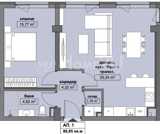 We present to you a 2-room apartment, on the 4th of 7 floors, with the following functional layout: entrance hall, spacious living room with kitchenette (33.24 sq.m.), with access to a terrace, bedroom (15.77 sq.m.), bathroom with toilet and storage room (wardrobe). The apartment is located in a luxurious multifunctional building, in the wide center of Sofia, with modern architecture and premium amenities!