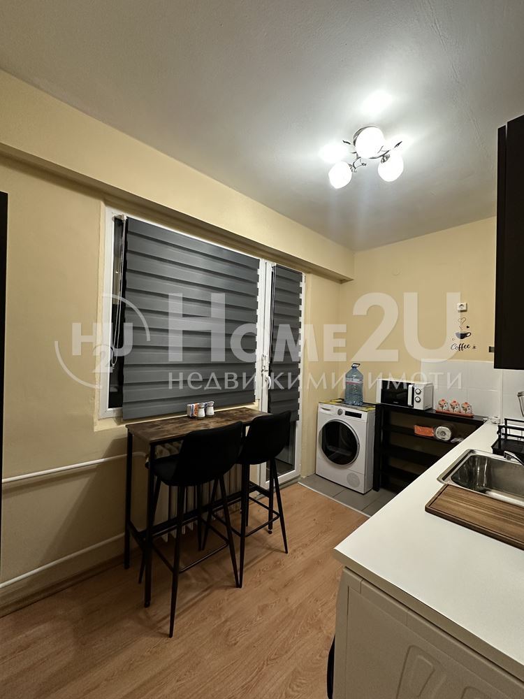 EXCELLENT LOCATION! ! ! NEWLY FURNISHED! ! ! FUNCTIONAL! ! ! We present to your attention a three-room apartment with the following functional layout: entrance hall, corridor, kitchen with living room with access to a glazed terrace, living room with access to a terrace, bedroom, second bedroom, bathroom, toilet, and storage room. The exposure is East/West. Heating is central and electric. The apartment has been completely renovated and furnished with everything necessary for a household. It is located behind the Second English High School and the Sun Medical Center, five minutes walk from South Park and the Ivan Vazov market. Available for long-term rent. Call now and quote code: 140453