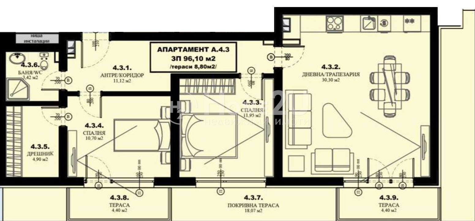 Home2U presents to your attention a three-room apartment in a newly constructed residential building 25 minutes from the center of Sofia, in the rapidly developing village of Gara Elin Pelin. The apartment is in a small boutique building of 5 floors in a newly constructed complex of 4 buildings, designed with the thought of comfortable living for every family. Each of the apartments in the building is designed with the thought of coziness, tranquility, and functionality, ensuring maximum use of space. It is situated on the fifth floor and consists of an entrance hall, a living room with a kitchenette with access to a terrace, a bedroom, a bedroom with a walk-in closet and access to a terrace, and a bathroom with a toilet. There is an option to purchase a parking space or garages with the apartment. For your convenience, we attach a layout scheme of the property. If you wish to purchase the property, call NOW and quote the following code: 122572