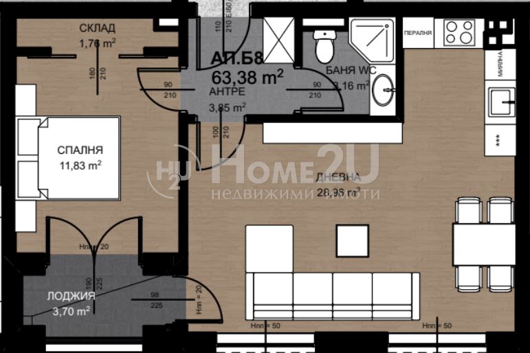 ЮЖЕН ! ! ! ВЪТРЕШЕН ! ! ! ПРОСТОРНА ВСЕКИДНЕВНА! ! ! Home2U предлага просторен двустаен апартамент в ново строяща...
