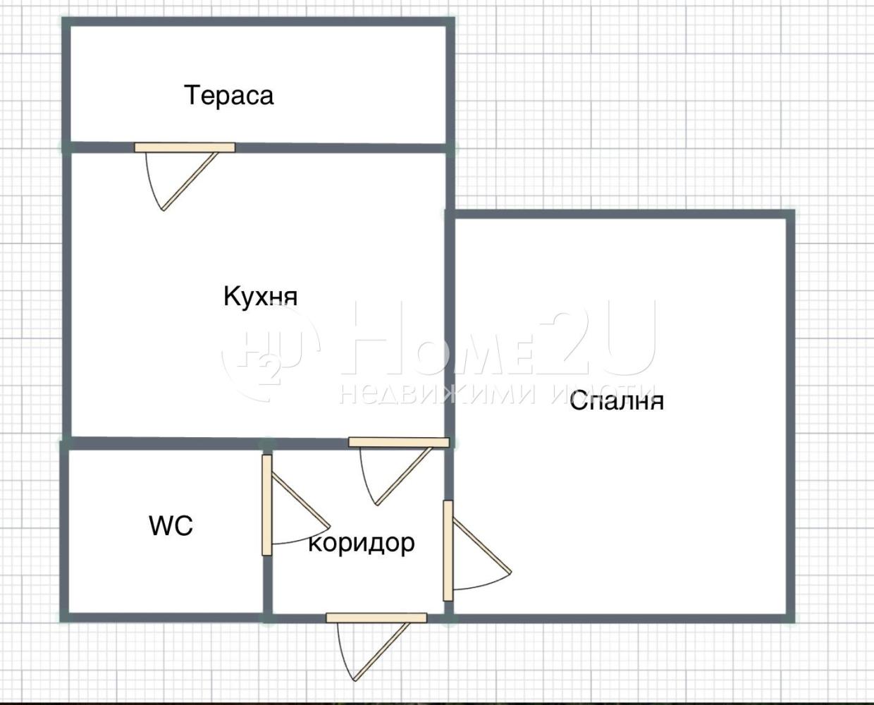 Жилището е със следното функционално разпределение: входно антре, дневна с кухненски бокс, спалня, тоалетна с баня и коридор..