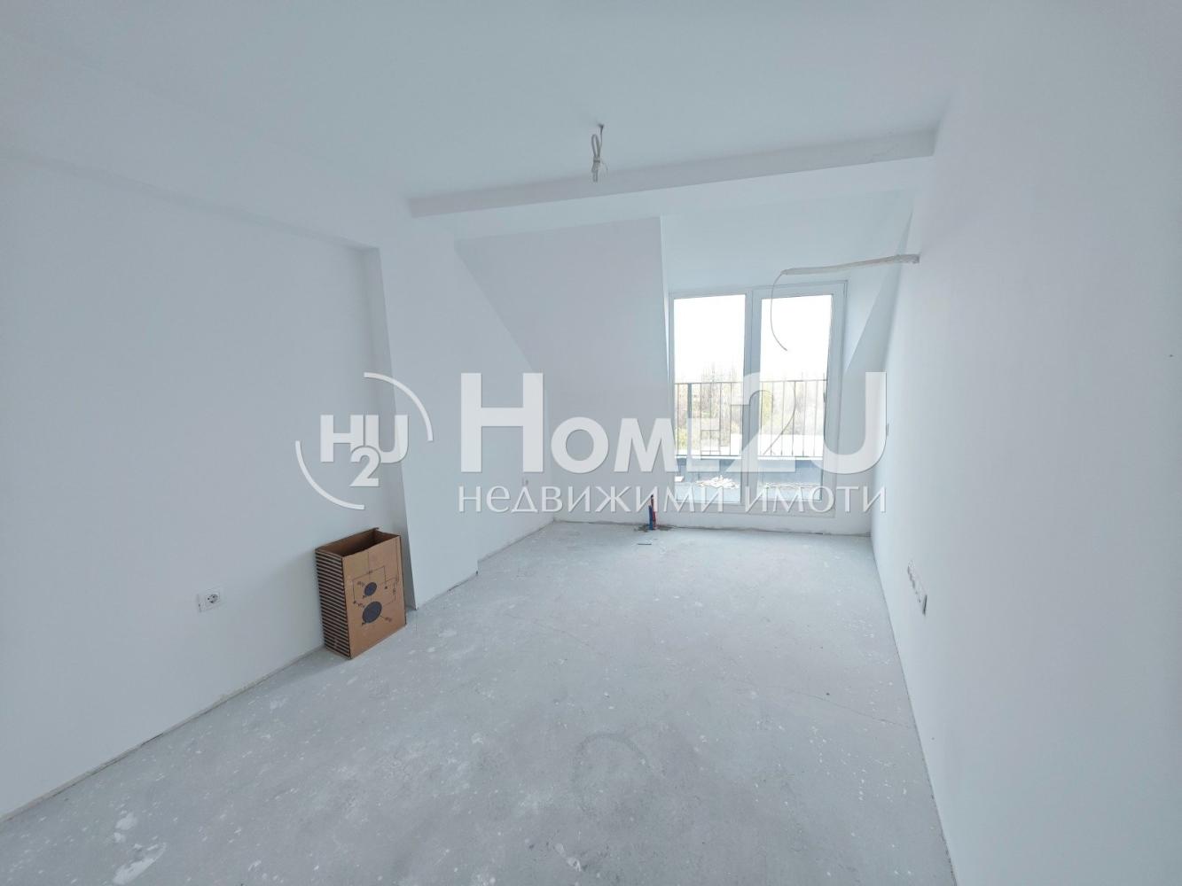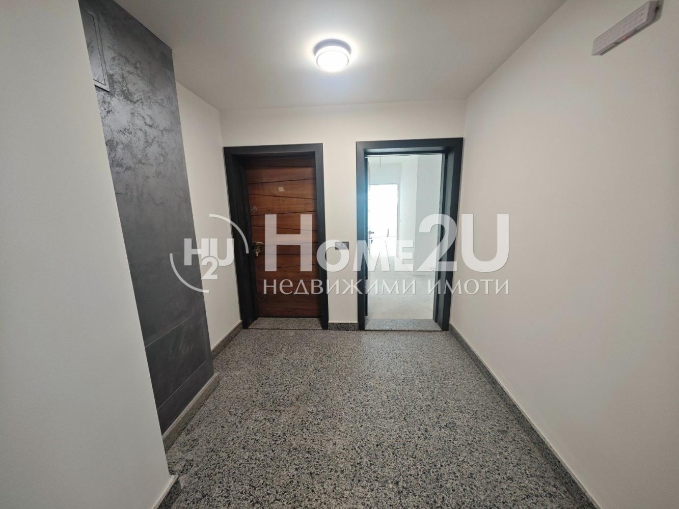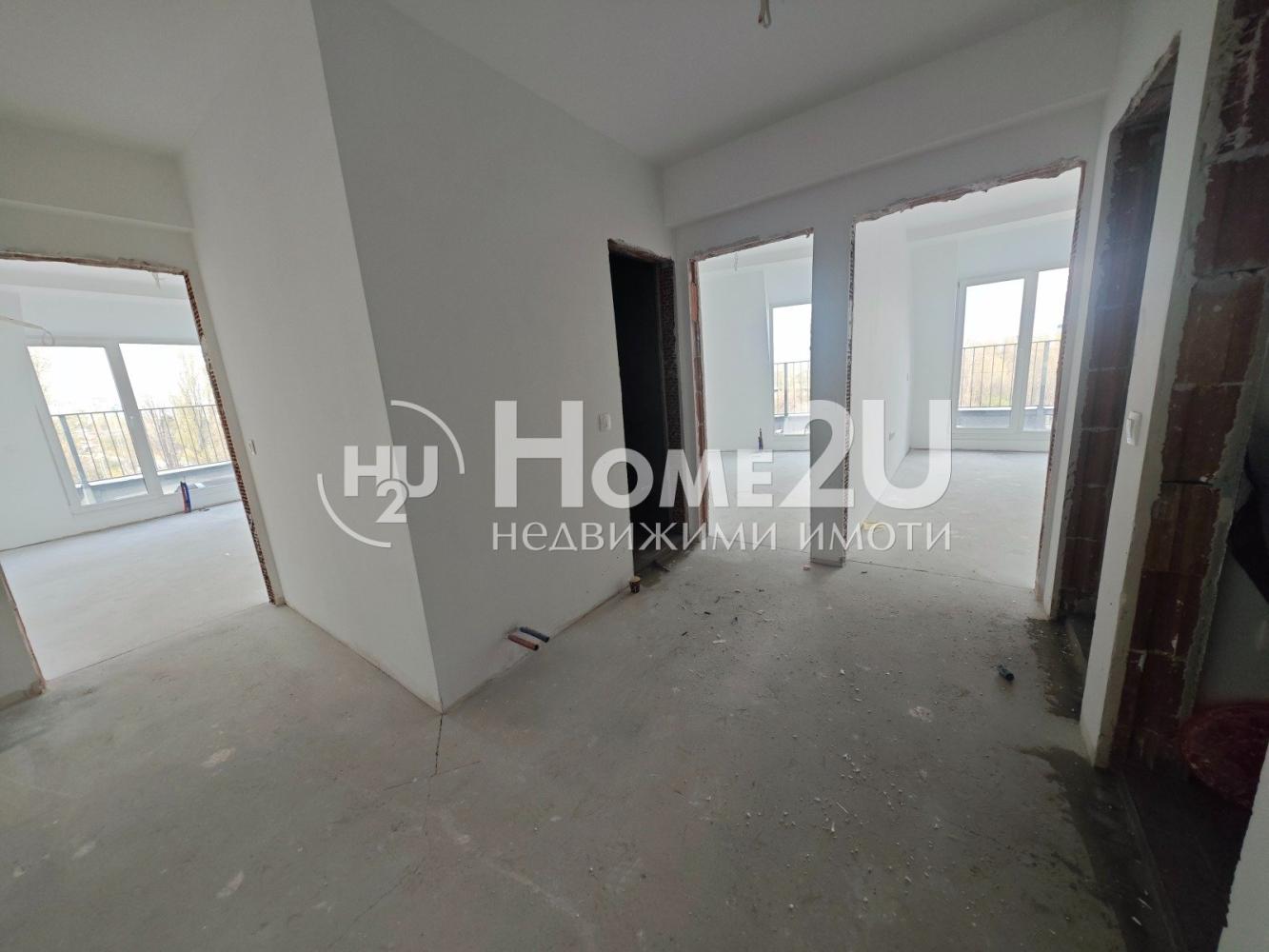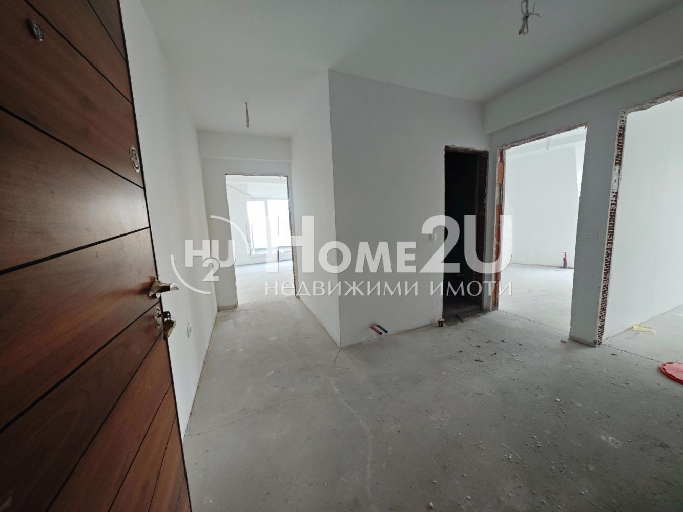 Апартамента е завършен на мазилка и подова замазка, входна блиндирана врата, монтирани ключове/контакти.