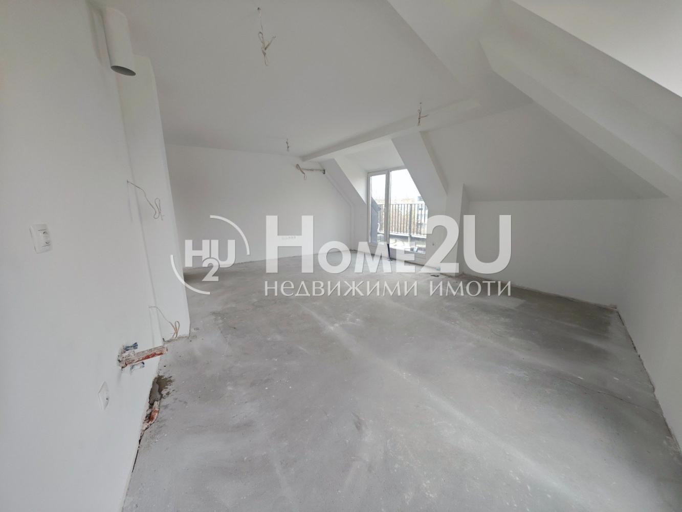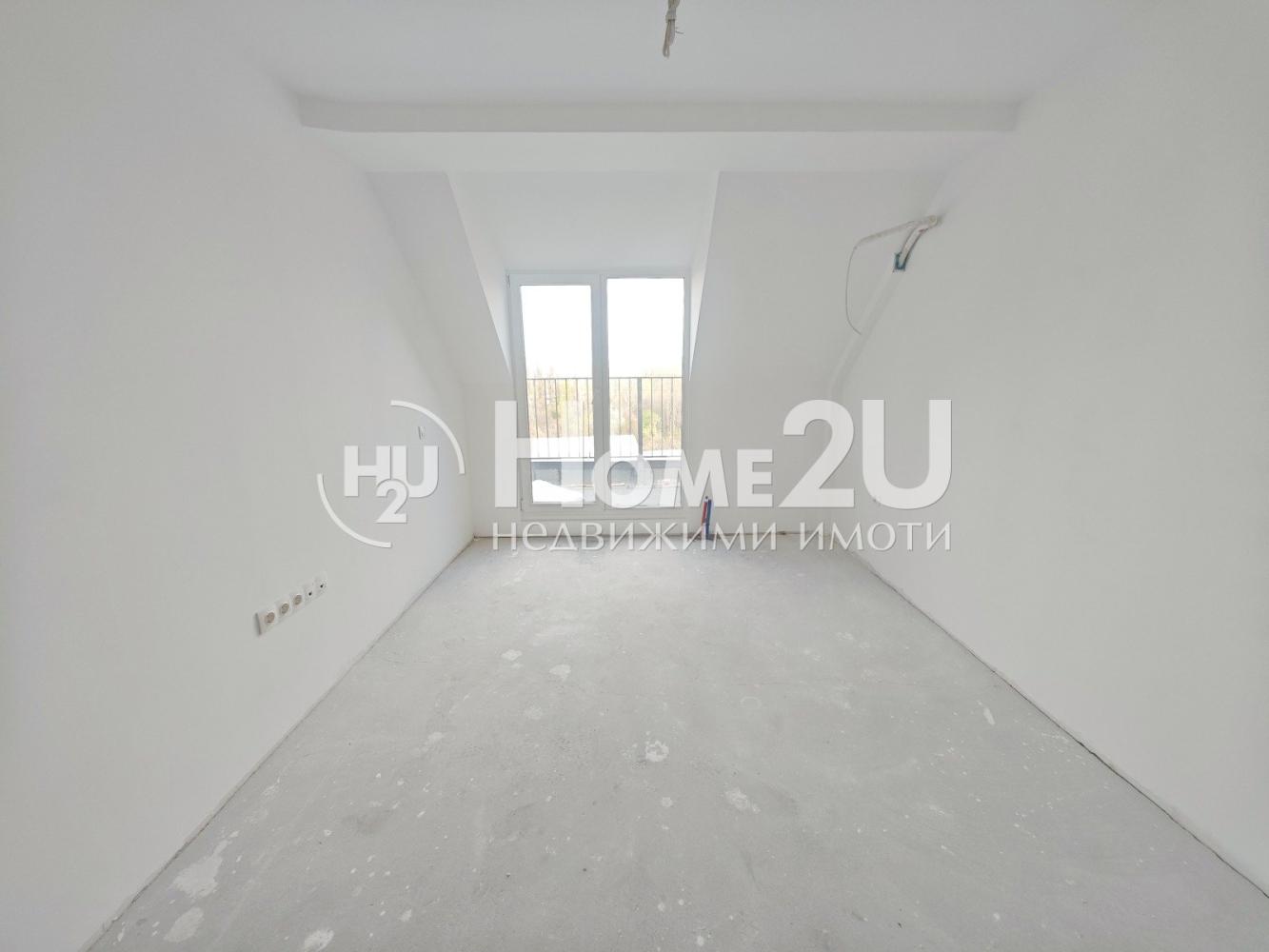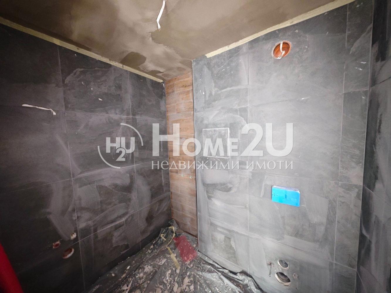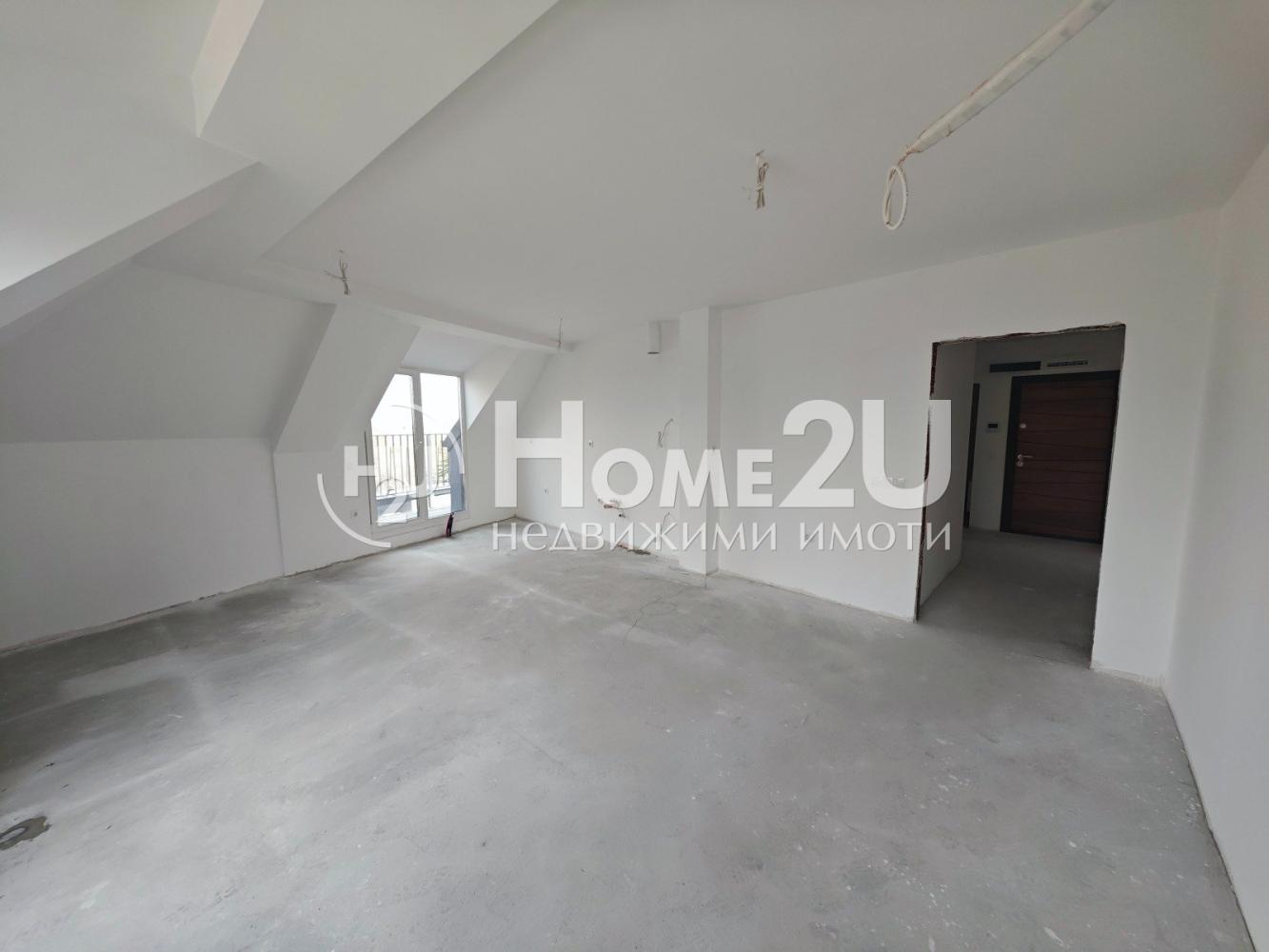 Апартамента е завършен на мазилка и подова замазка, входна блиндирана врата, монтирани ключове/контакти.