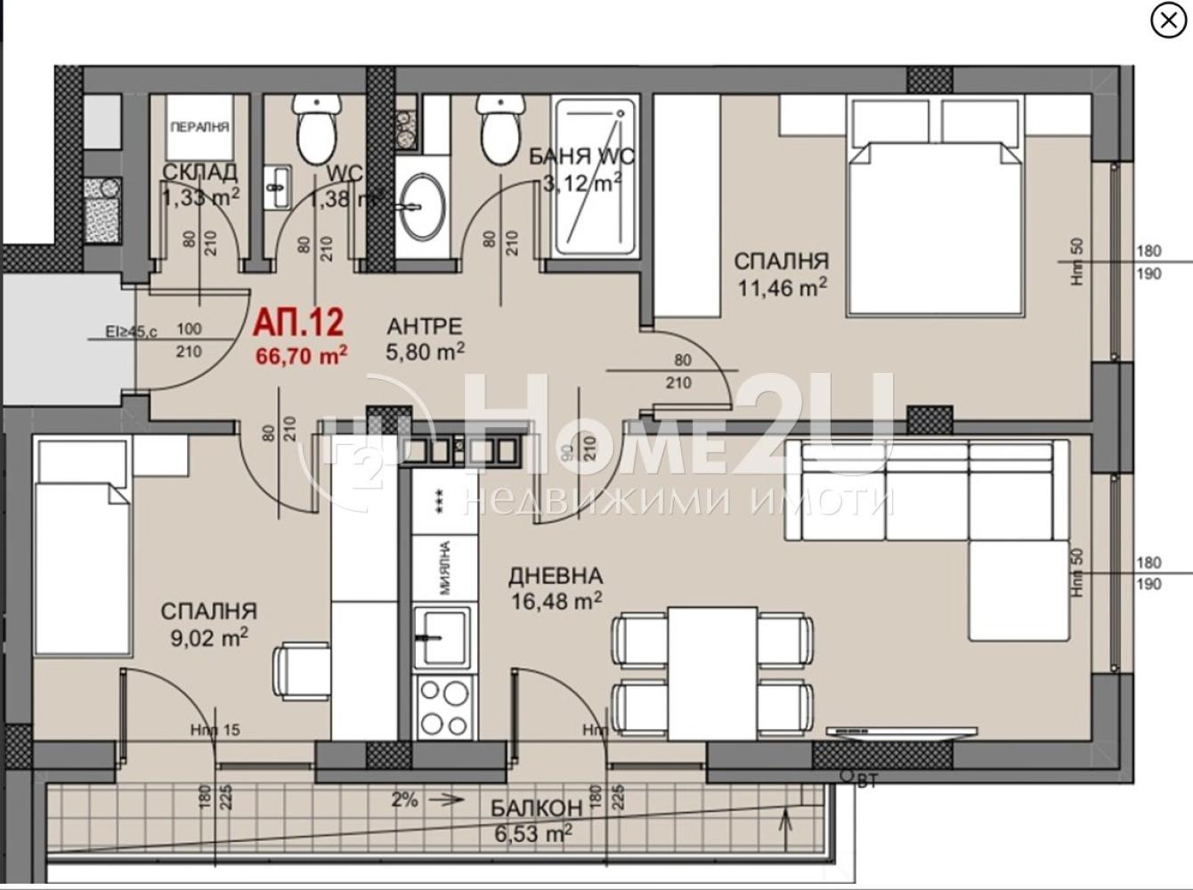 3-стаен, 83.13 m2, Овча Купел, 199,512 €, Home2U, Хоум Ту Ю Преминаване към съдържанието