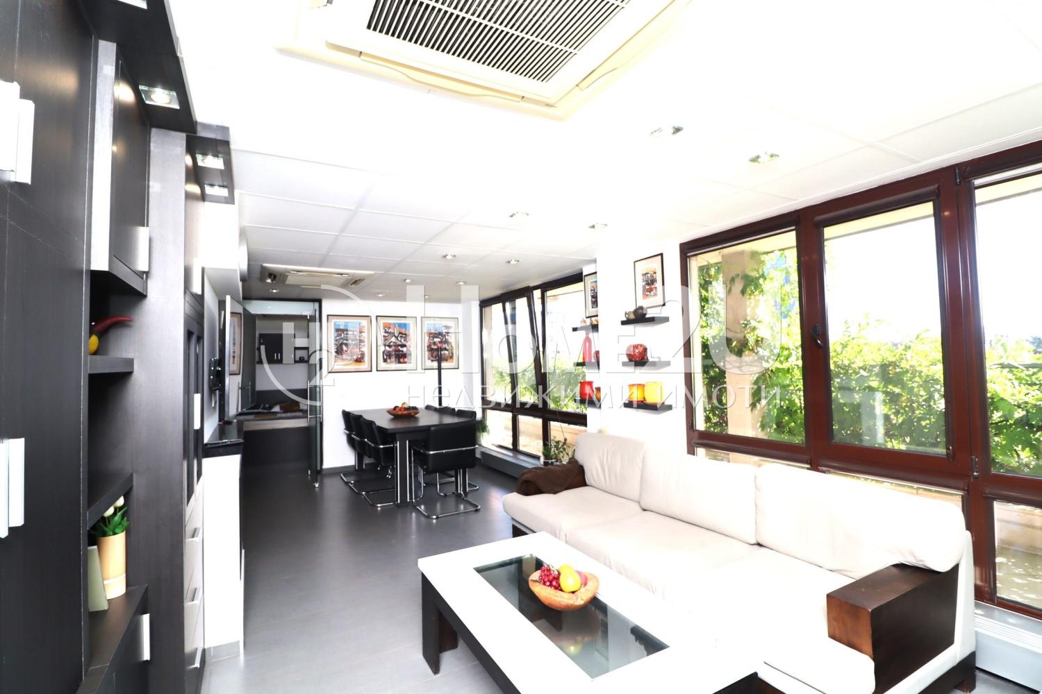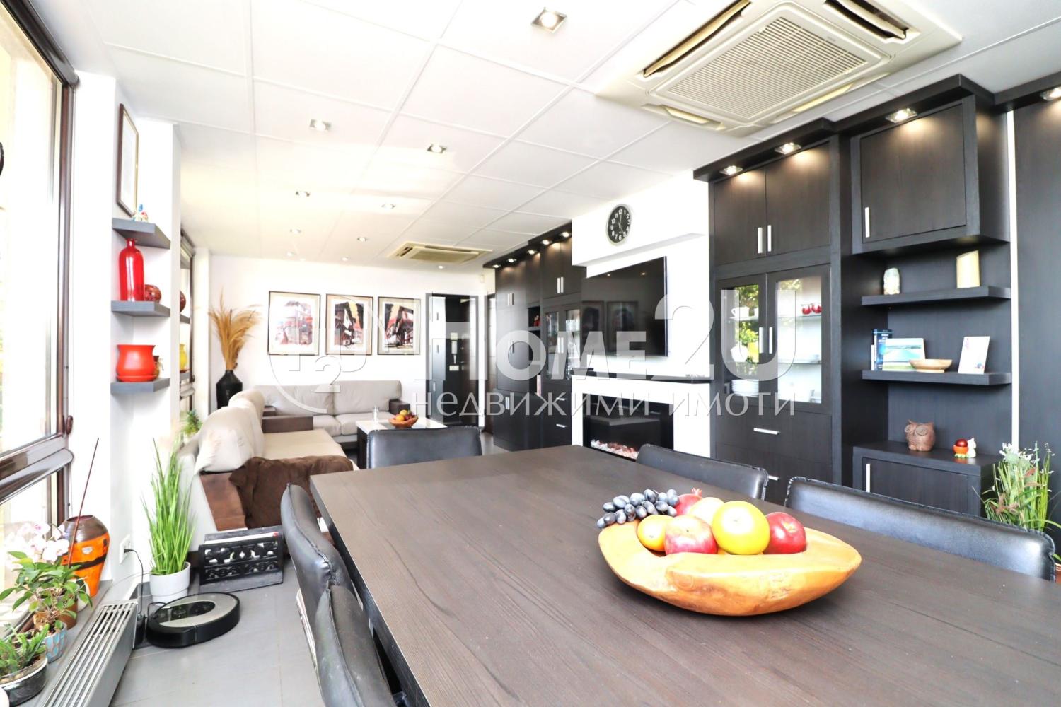 Жилището се продава напълно завършено и обзаведено, готово за живеене. Апартаментът е оборудван с висок клас електро уреди, а обзавеждането е изработено по дизайнерски проект.