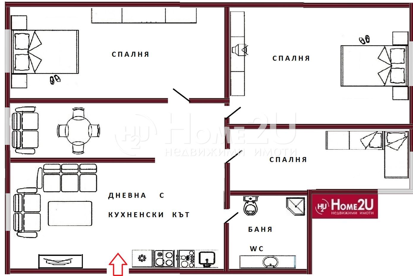 Самостоятелна едноетажна къща! На 5 км от морския бряг! Home2U представя на Вашето внимание самостоятелна едноетажна къща находяща се в село Маринка,което е на 12км. от Бургас и на 5км от морето. Имота е с РЗП 60кв.м. разположен върху 500кв.м. дворно място, състои се от дневна с кухненски кът,антре ,три спални и баня и тоалетна заедно. За Ваше улеснение прилагаме схема с разпределение на имота. Обадете се сега и цитирайте този код: 131430