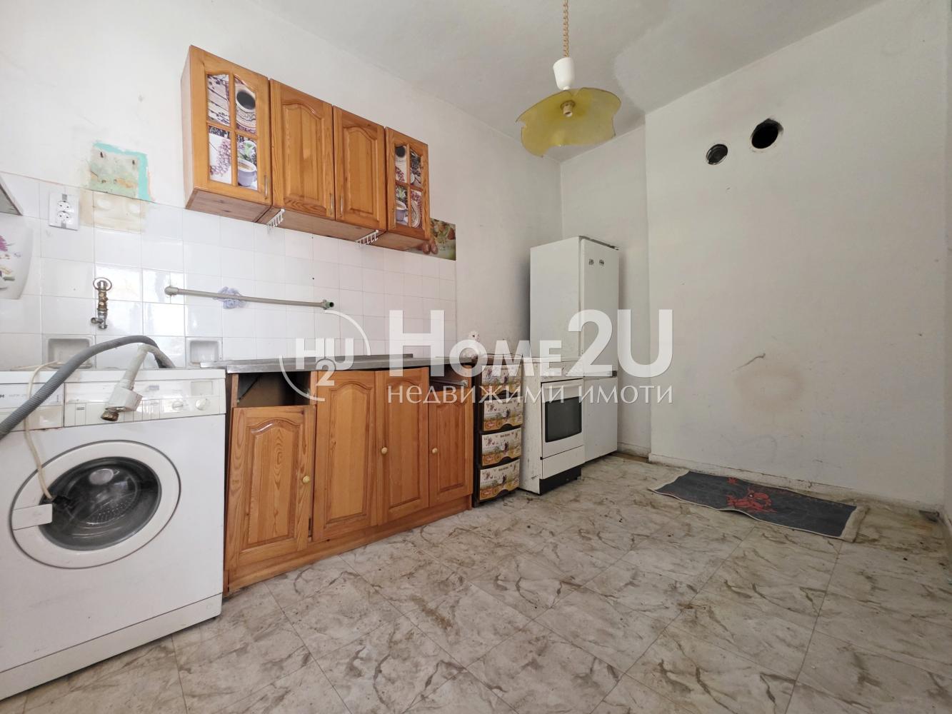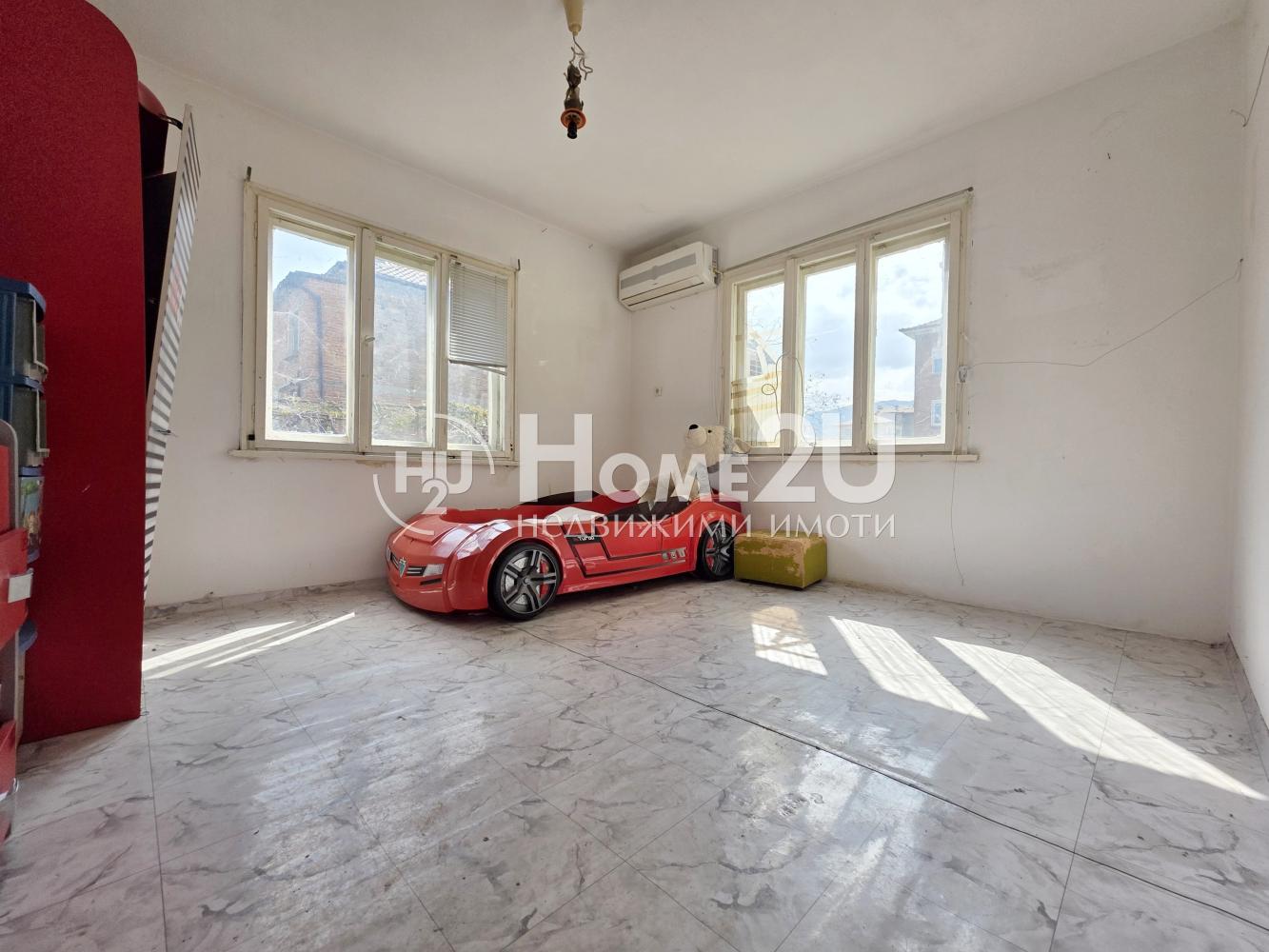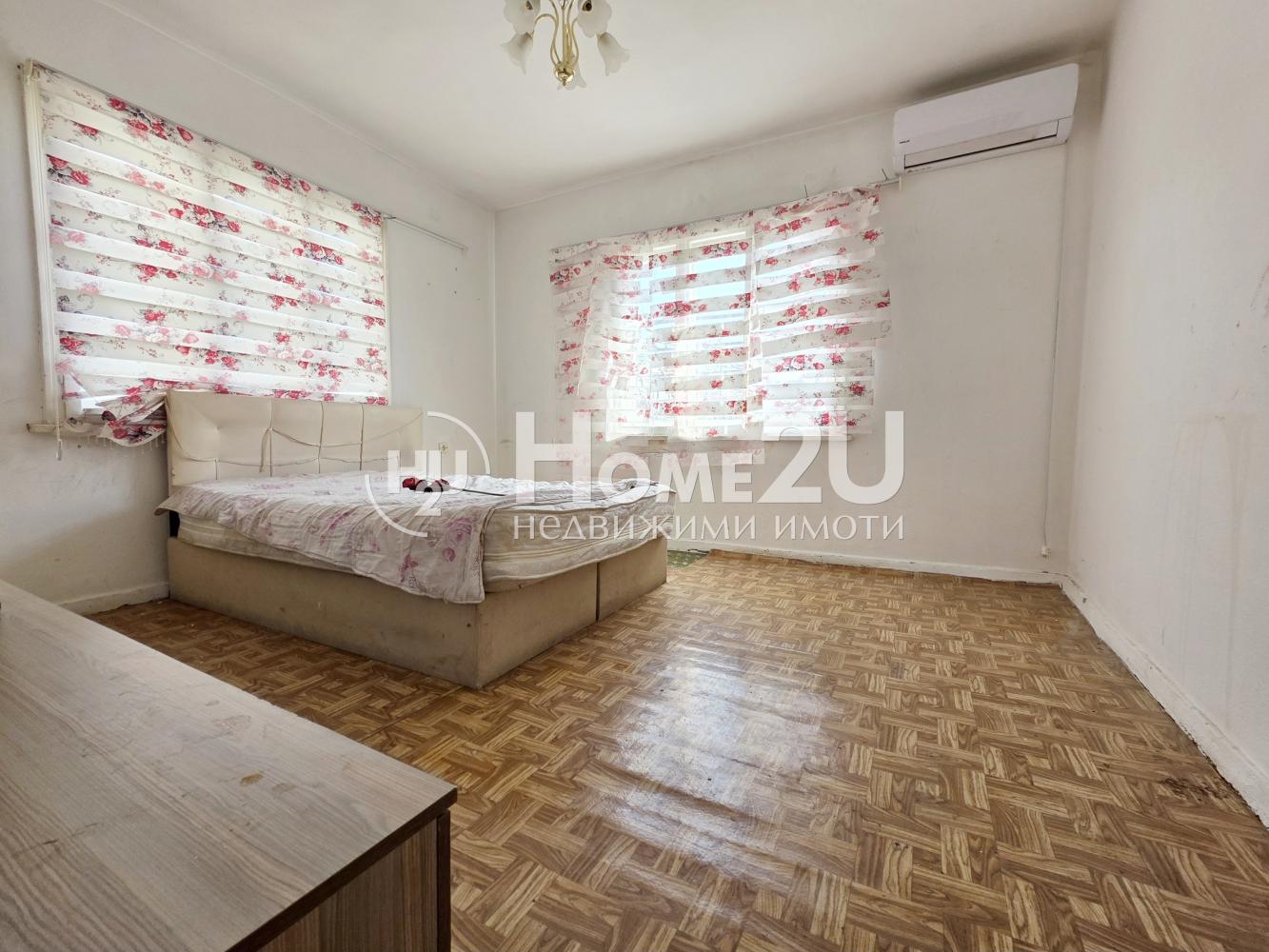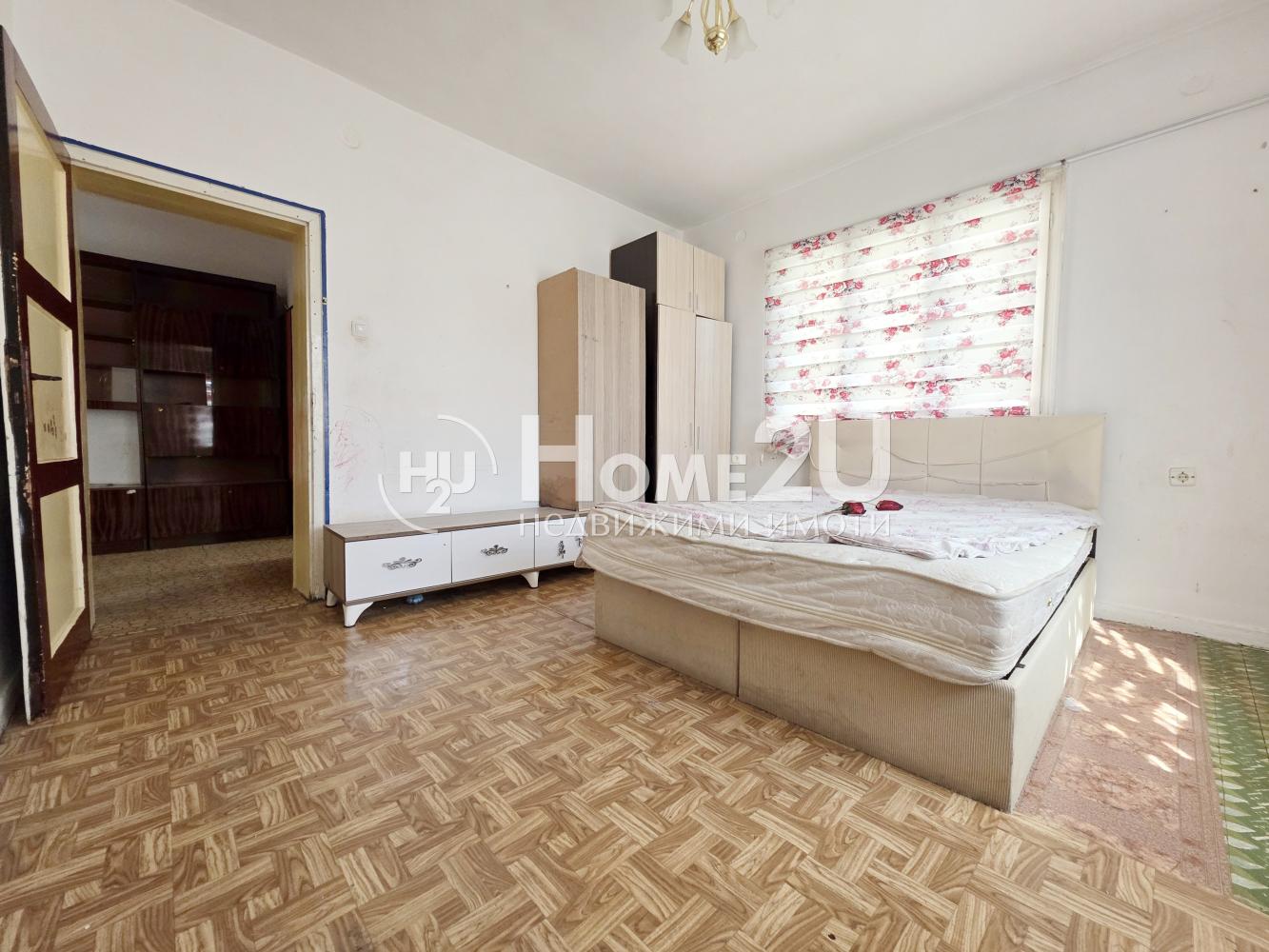 Жилището има следното функционално разпределение: просторна дневна с отделен кухненски бокс, три спални, баня с тоалетна. Към жилището има двор, гараж и цял отделен партерен етаж!