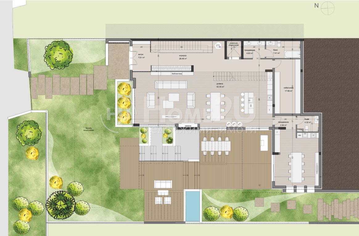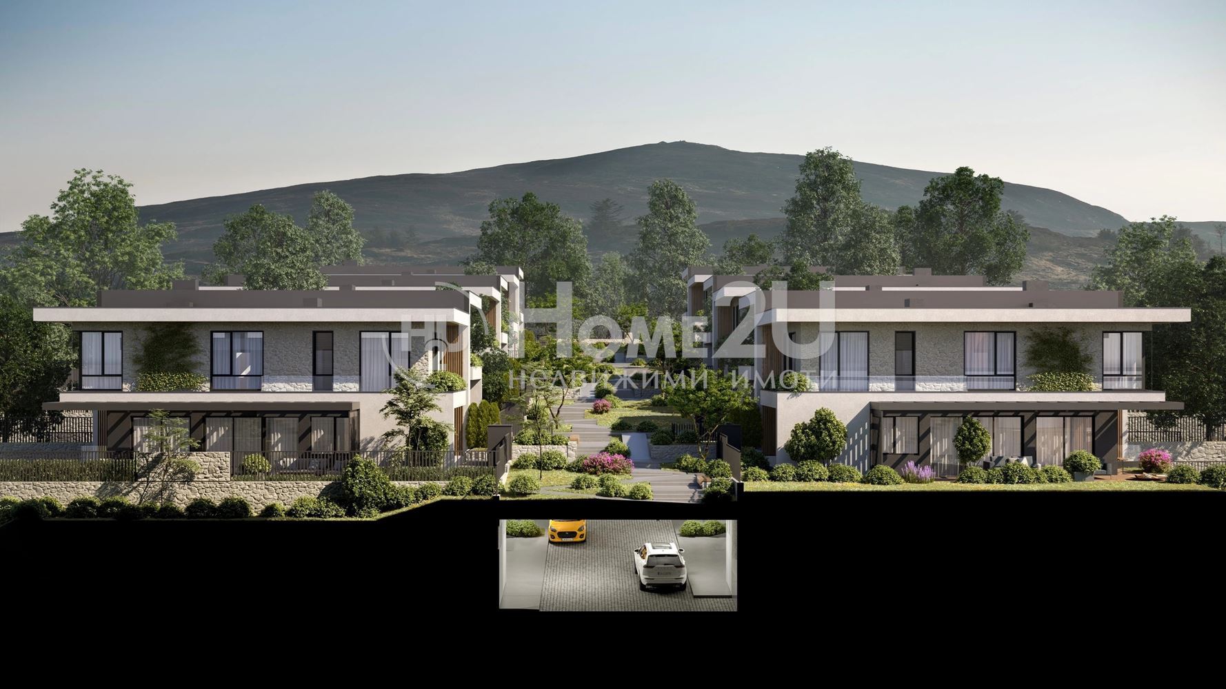 Цялата територия е изцяло пешеходна, с отделен подземен автомобилен достъп. Контролираният вход, внимателно оформените зони за отдих и детски пространства гарантират спокойствие и безопасност в изискана среда.Просторни домове с премиум усещане