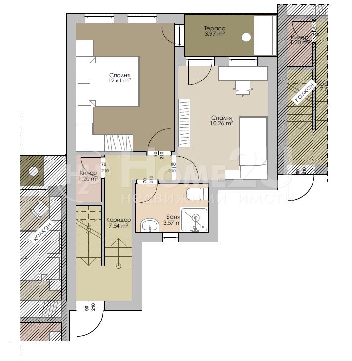 Ет. 2 - родителска спалня с излаз на панорамна тераса, втора спалня, баня и тоалетна ведно.