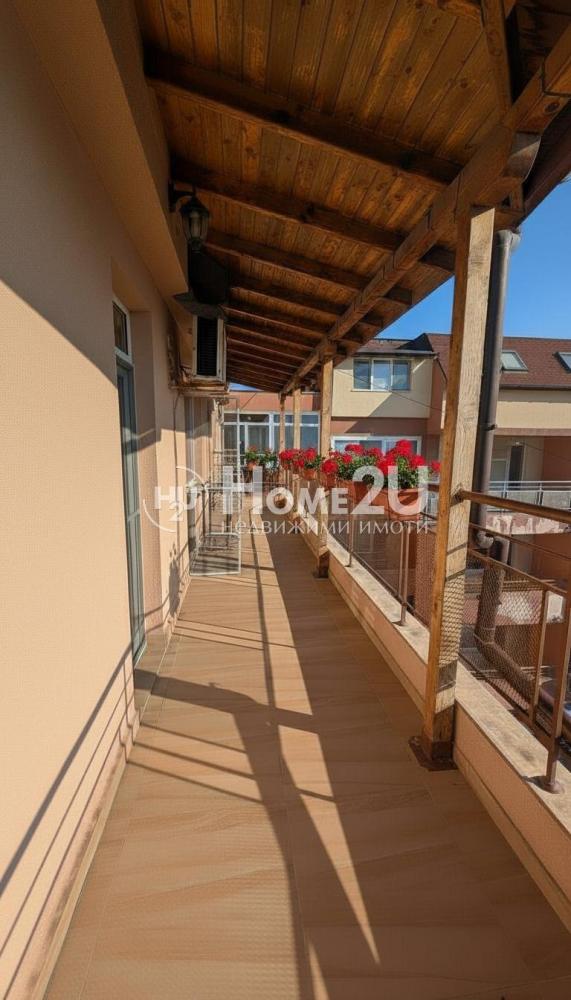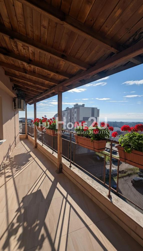 Едно от най-големите предимства на имота е голямата панорамна тераса, част от която е закрита и обзаведена – перфектно място за отдих, семейни събирания и релакс с прекрасна гледка.