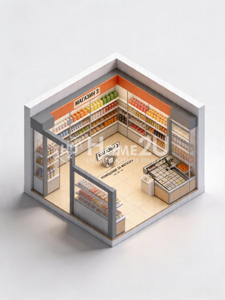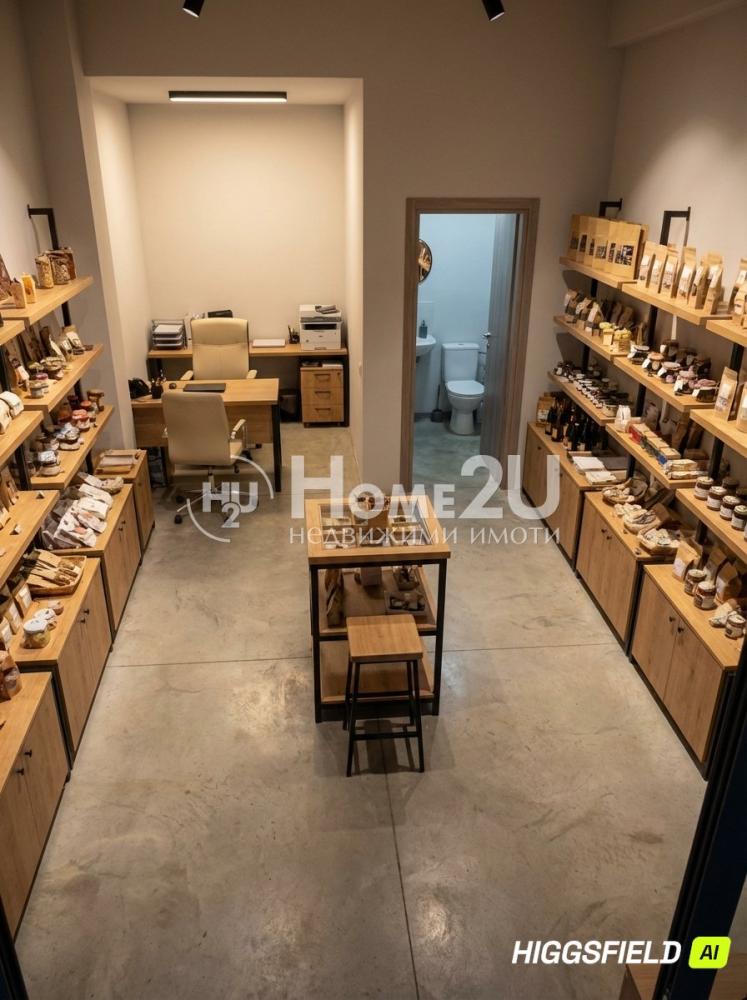 Разпределението позволява ефективно организиране на работна зона, приемна част и складово пространство. Идеално решение както за стартиращ бизнес, така и за представителен офис или бутиков магазин.