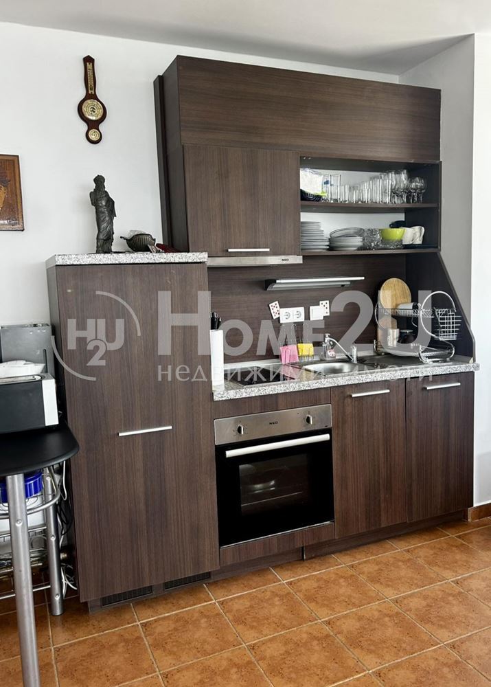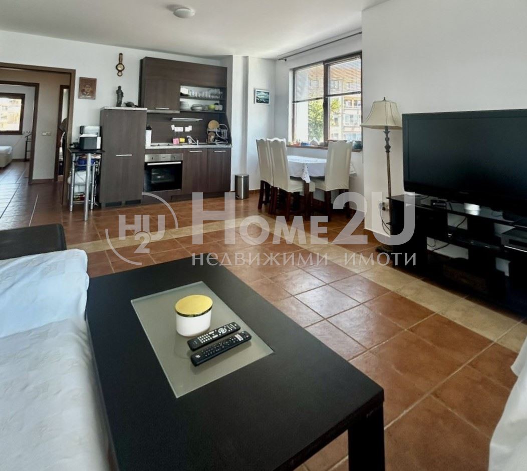Апартаментът е в много добро състояние, оборудван и обзаведен изцяло. Разполага с климатици във всяка от стаите. Електрически външни ролетни щори в спалните и на терасата към всекидневната. Външна и вътрешна топлоизолация и качествена дограма осигуряват тишина и спокойствие. Пред прозорците и балкона има пешеходна алея и море!