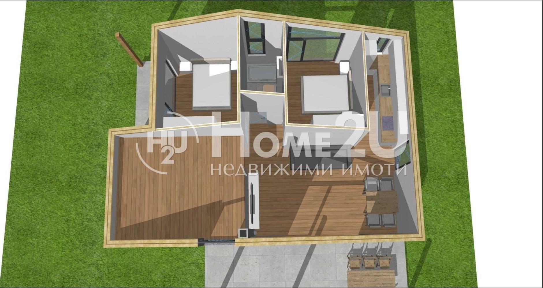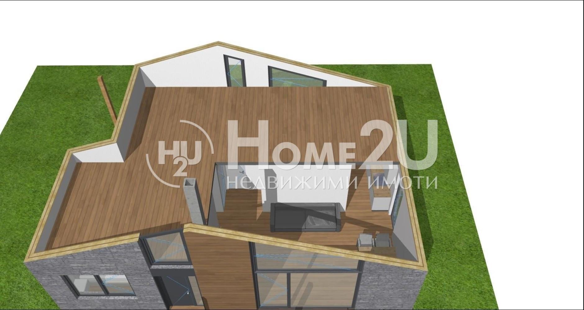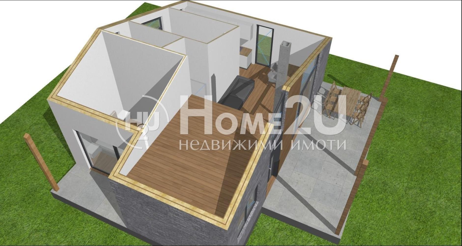 Home2u представя на Вашето внимание новострояща се къща с модерна визия и собствен двор на тихо и спокойно място в с. Железница. Къщата е ориентирана на юг и от всички прозорци се откриват прекрасни гледки към Витоша и Плана планина, като ще бъде завършена до ключ с най-висок клас материали, дограма REHAU с троен стъклопакет, подово отопление, подови настилки от винил и теракот, 500 кв.м. озеленен двор със собствен водоизточник и септична яма. Къщата разполага със следното функционално разпределение: просторна всекидневна с кухня с излаз на веранда, три спални, баня и тоалетна, още една баня и склад на първия етаж, както и голямо отворено пространство обособено на добре оформен полуетаж, което може да служи за широк кабинет с детски кът, или оформено според визията на новите собственици. Близостта на този имот да основни пътни артерии, както и постоянно живеещи съседи, го прави изключително подходящ, както за целогодишно живеене, така и за бягство от шума на големия град през уикенда. За да запазите час за оглед се обадете СЕГА и цитирайте следния код: 133863