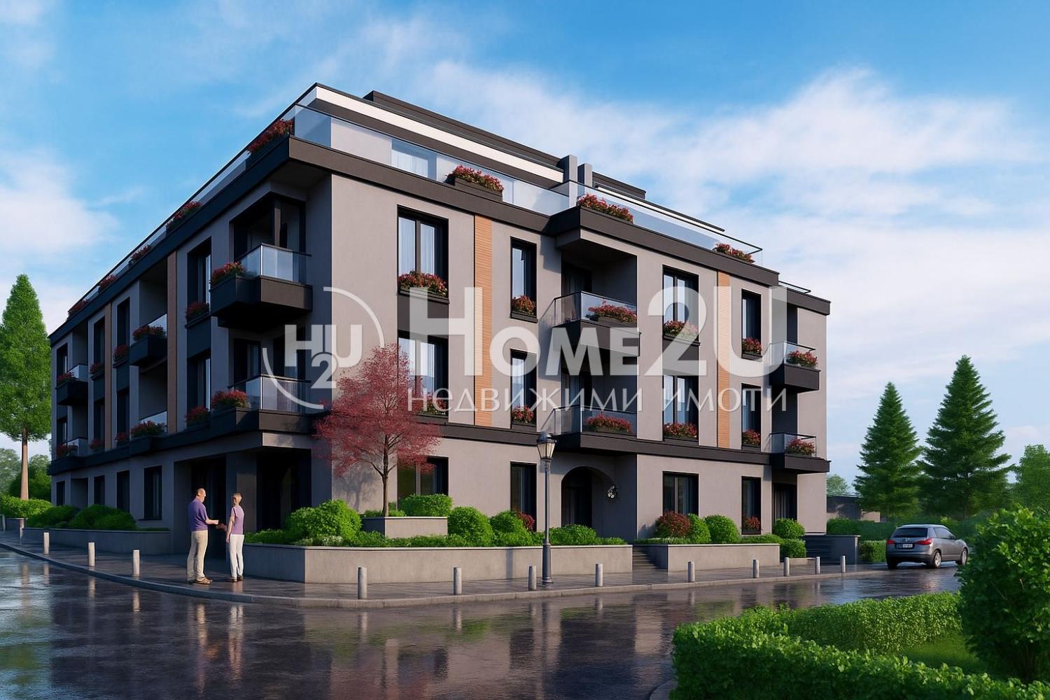 Home2U ви представя двустаен апартамент в бутикова жилищна сграда, създадена с внимание към детайла и комфорта. Сградата е четириетажна, изградена с тухли Wienerberger и окачена фасада с керамични плочи, които придават изискана визия.