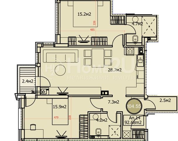104.55 m2
