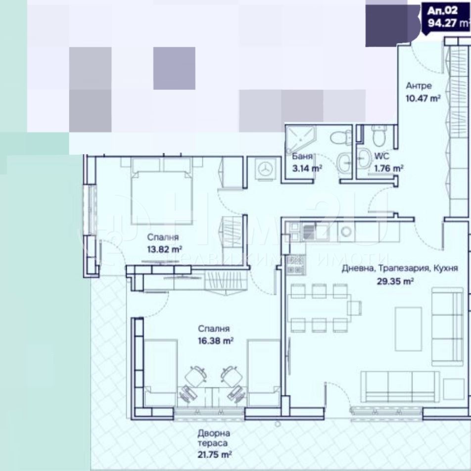 За ваше улеснение прилагаме схема на разпределение на имота. За допълнителна информация и организиране на оглед, обадете се на посочения телефон и цитирайте този код: 130296