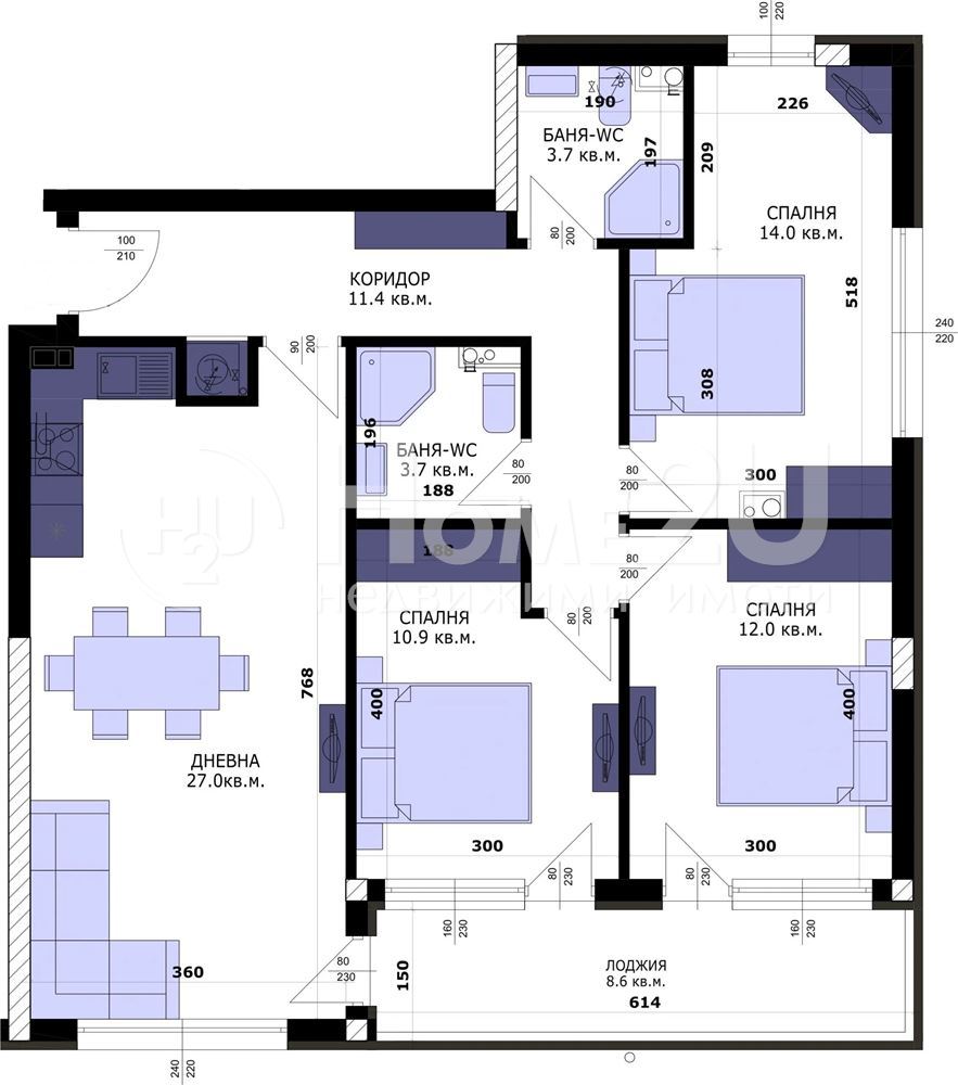 Представяме Ви слънчев четиристаен апартамент, разположен на 11-ти етаж в нова жилищна сграда.