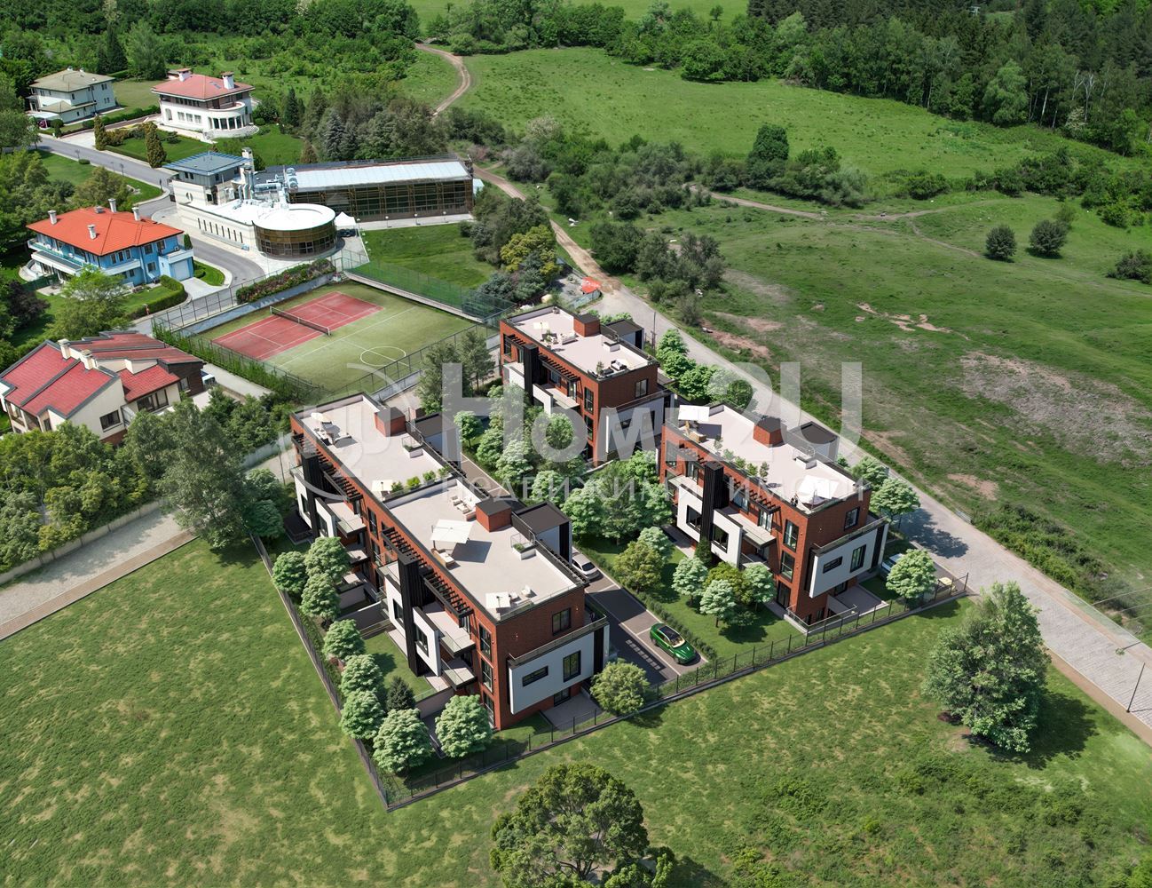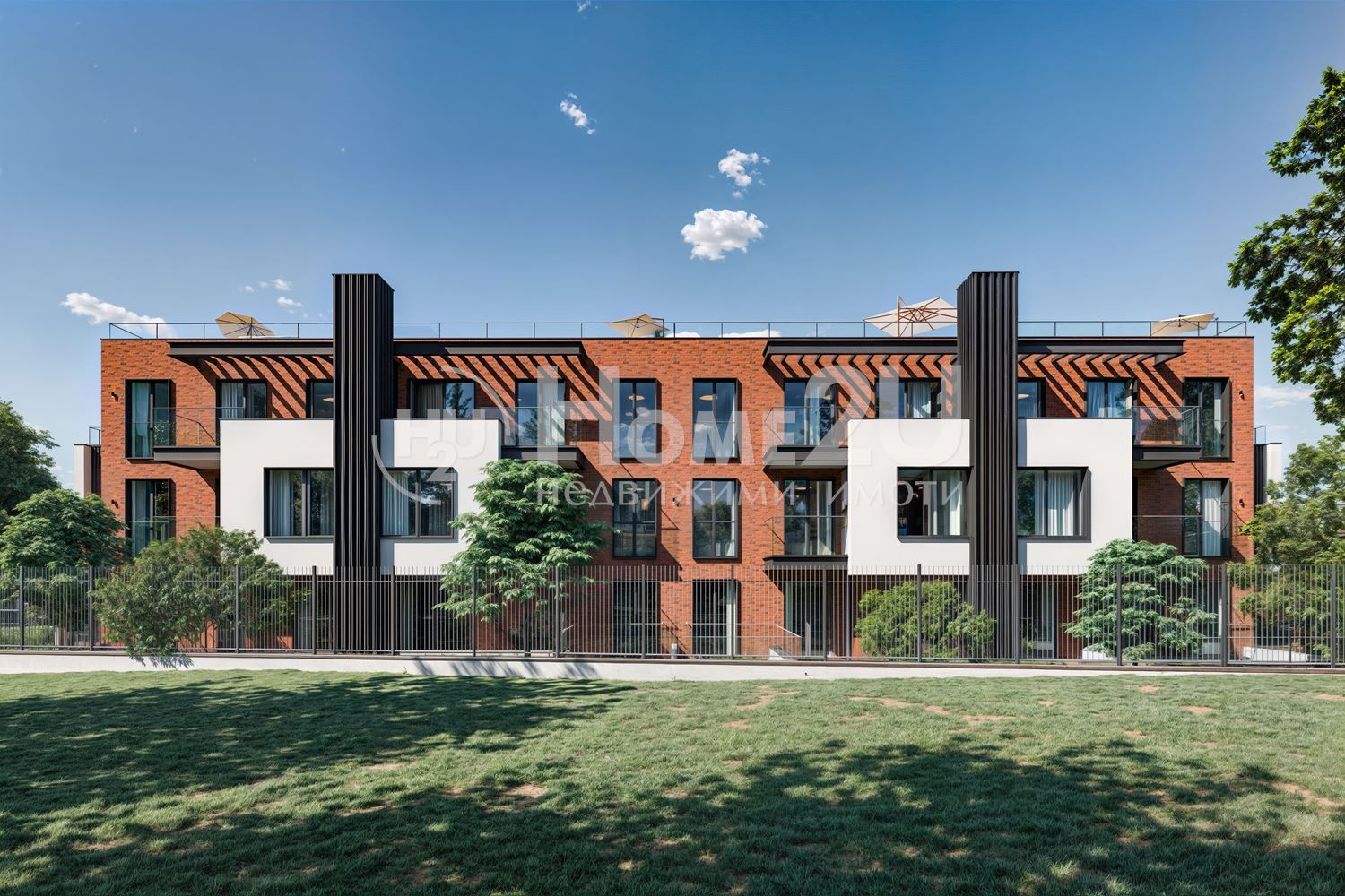 Здание расположено на просторном участке с ландшафтным дизайном, включающим ухоженные газоны, декоративные кустарники и деревья. Во дворе будет детская площадка и зоны отдыха, которые обеспечат комфорт жителям.