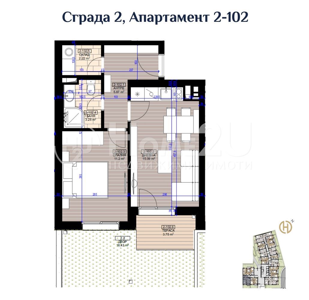 2-комнатная, 61.07 m2, , 232,780 €, Home2U, Хоум Ту Ю Skip To Content