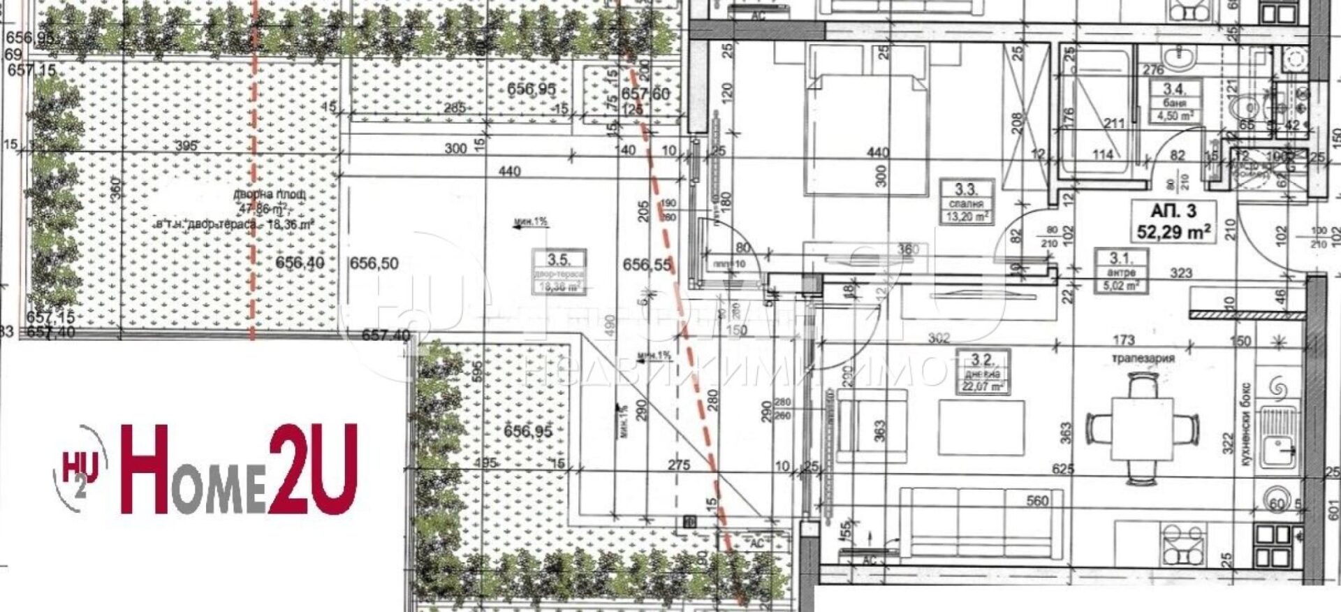 ПЕРЕД АКТ 16! НИЗКИЙ ПРОЦЕНТ ОБЩИХ ЧАСТЕЙ! СОБСТВЕННЫЙ ДВОР! Houm To You представляет: двухкомнатная квартира на первом (цокольном) этаже, расположенная в новостроящемся кирпичном здании, перед АКТ 16! Квартира находится в ж.к. «Градина» — самой южной и предпочтительной части кв. «Витоша». В 200 м от бул. «Симеоновско шосе» и в 30 м от будущей улицы, выходящей напрямую на Околовръстен път, что делает локацию исключительно удобной, с быстрым и лёгким доступом ко всем точкам Софии. Общая площадь жилья — 59 кв. м; имеется собственный двор 20 кв. м, идеальный для отдыха и озеленения. В цену также входит склад (кладовая) площадью 3,66 кв. м. Для вашего удобства прилагаем схему планировки. Если вы хотите приобрести этот объект или получить больше информации, позвоните СЕЙЧАС и назовите следующий код: 143125