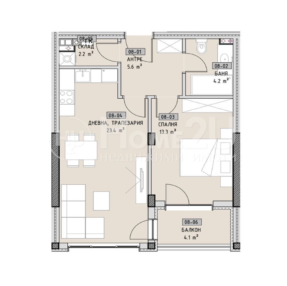 АКТ 15 !!! ВЫСОКИЙ КЛАСС СТРОИТЕЛЬСТВА !!! ПРАВИЛЬНЫЕ ФОРМЫ !!! Home2U представляет вашему вниманию двухкомнатную квартиру в бутиковом здании высокого класса в ж.к. Малинова Долина ПЕРЕД АКТ 16! Здание расположено в очень тихой части, рядом с магазином Фантастико, Кауфланд, недалеко от будущей станции метро и с быстрым доступом к бул. Симеоновское шоссе и Окружная дорога. Функциональная планировка недвижимости: входная прихожая, гостиная с кухонным боксом, спальня, кладовая, ванная комната с туалетом и балкон. Все квартиры имеют встроенную звукоизоляцию пола, умные двери с доступом по отпечатку пальца и дополнительную изоляцию между каждой стеной. Для вашего удобства мы предоставляем схему планировки недвижимости. Если вы хотите приобрести эту недвижимость, звоните СЕЙЧАС и укажите следующий код: 131947